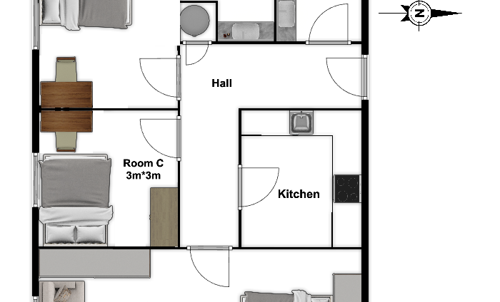 房间C租金:£353.00/周,2023/8/4起租